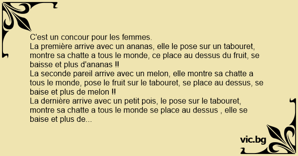 La première arrive avec un ananas, elle le pose sur un tabouret, montre sa сhатте a tous le monde, ce place au dessus du fruit, se baisse et plus d'ananas !!