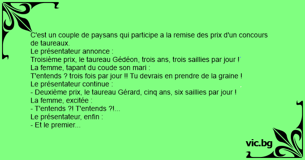 - Deuxième prix, le taureau Gérard, cinq ans, six saillies par jour !
