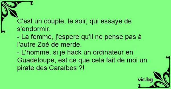 - L'homme, si je hack un ordinateur en Guadeloupe, est ce que cela fait de moi un pirate des Caraïbes ?!