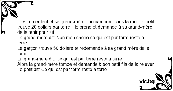 La grand-mère dit: Ce qui est par terre reste à terre