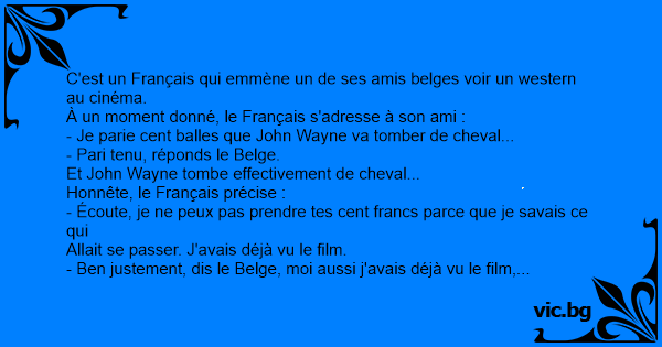 C'est un Français qui emmène un de ses amis belges voir un western au cinéma.