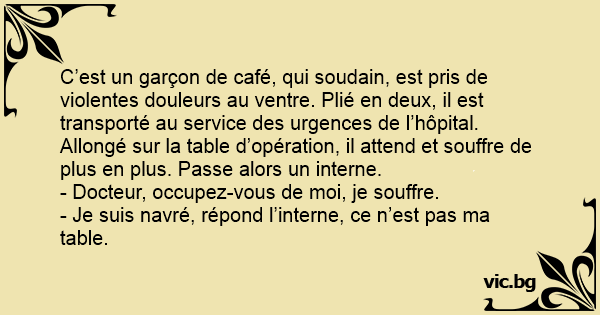 - Je suis navré, répond l’interne, ce n’est pas ma table.