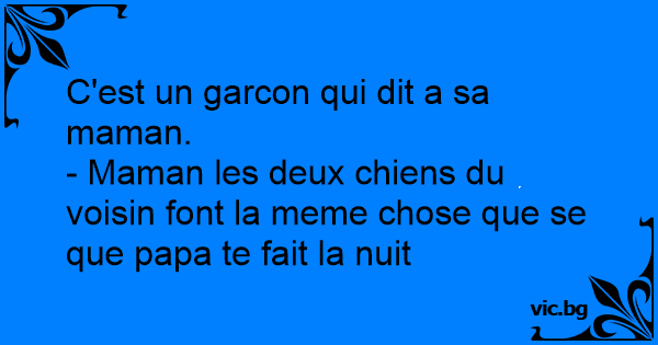 - Maman les deux chiens du voisin font la meme chose que se que papa te fait la nuit