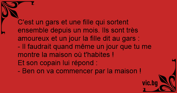 C'est un gars et une fille qui sortent ensemble depuis un mois. Ils sont très amoureux et un jour la fille dit au gars :