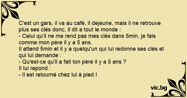 C'est un gars, il va au café, il dejeune, mais il ne retrouve plus ses clés donc, il dit a tout le monde :