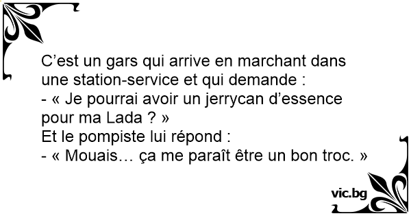 - « Je pourrai avoir un jerrycan d’essence pour ma Lada ? »