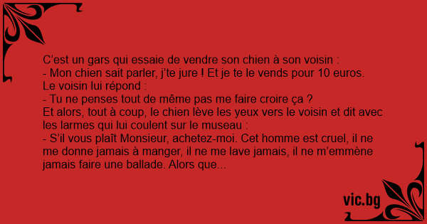 - Mon chien sait parler, j’te jure ! Et je te le vends pour 10 euros.
