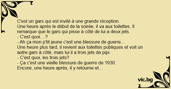 Une heure plus таrd, il revient aux toilettes publiques et voit un autre gars à côté, mais lui il a trois jets de pipi.