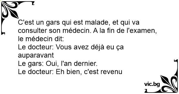 C'est un gars qui est malade, et qui va consulter son médecin. A la fin de l'examen, le médecin dit: