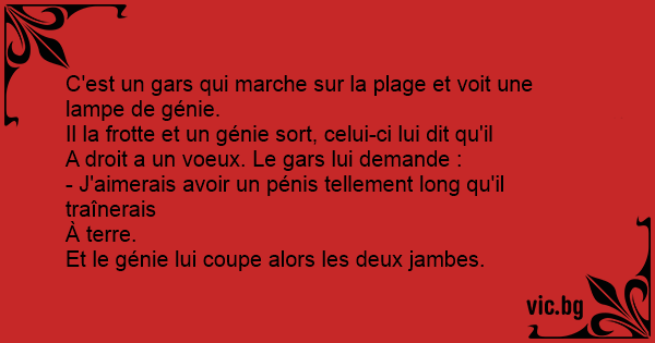 C'est un gars qui marche sur la plage et voit une lampe de génie.