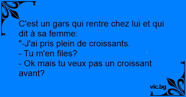 C'est un gars qui rentre chez lui et qui dit à sa femme: