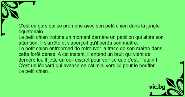Quand le léopard entend ça, il s'arrête net, rebrousse chemin en ne voulant pas prendre de risque avec ce petit animal qu'il n'a jamais vu avant. Ouf ! C'était moins une pour le petit chien.