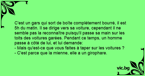 C'est un gars qui sort de boîte complètement bourré, il est 5h du matin. Il se dirige vers sa voiture, cependant il ne semble pas la reconnaître puisqu'il passe sa main sur les toits des voitures garées. Pendant ce temps, un homme passe à côté de lui, et lui demande: