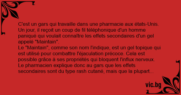 Du coup, le gars explique que lui et sa femme venaient tout juste d'utiliser le "Maintain", et que depuis, sa femme prononçait les mots de manière incompréhensible et n'était plus capable de contrôler sa langue...