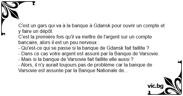 - Alors, il n'y aurait toujours pas de problème car la banque de Varsovie est assurée par la Banque Nationale de Pologne !