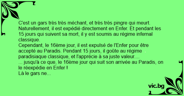 ... jusqu'à ce que, le 16ème jour qui suit son arrivée au Paradis, on le réexpédie en Enfer !