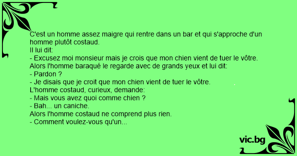 - Excusez moi monsieur mais je crois que mon chien vient de tuer le vôtre.