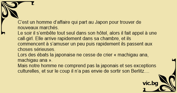 Lors des ébats la japonaise ne cesse de crier « machigau ana, machigau ana ».