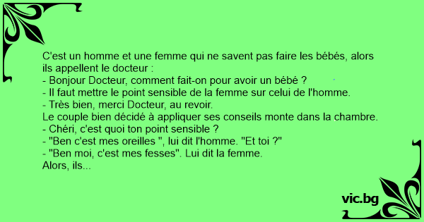 C'est un homme et une femme qui ne savent pas faire les bébés, alors ils appellent le docteur :