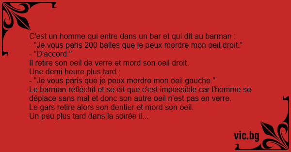 - "Je vous paris 200 balles que je peux mordre mon oeil droit."