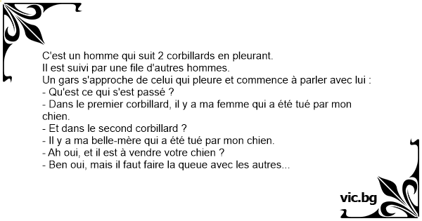 - Dans le premier corbillard, il y a ma femme qui a été tué par mon chien.
