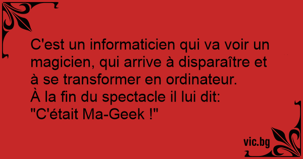 C'est un informaticien qui va voir un magicien, qui arrive à disparaître et à se transformer en ordinateur.