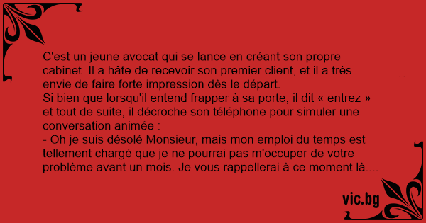 Puis le jeune avocat se tourne vers le visiteur et lui demande :
