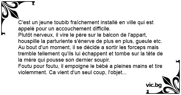 C'est un jeune toubib fraîchement installé en ville qui est appelé pour un accouchement difficile.