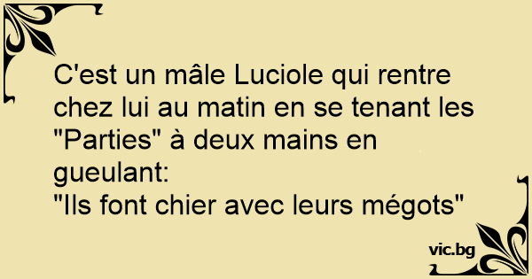 C'est un mâle Luciole qui rentre chez lui au matin en se tenant les "Parties" à deux mains en gueulant: