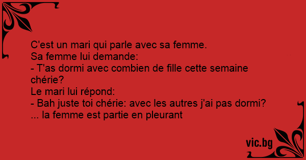 - Bah juste toi chérie: avec les autres j'ai pas dormi?