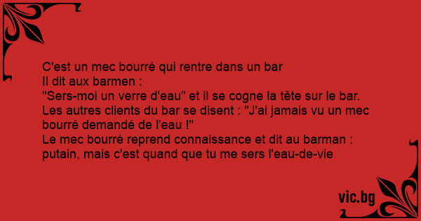 Les autres clients du bar se disent : "J'ai jamais vu un mec bourré demandé de l'eau !"
