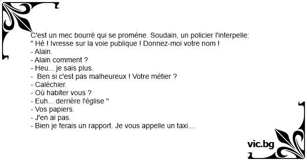 C'est un mec bourré qui se promène. Soudain, un policier l'interpelle: