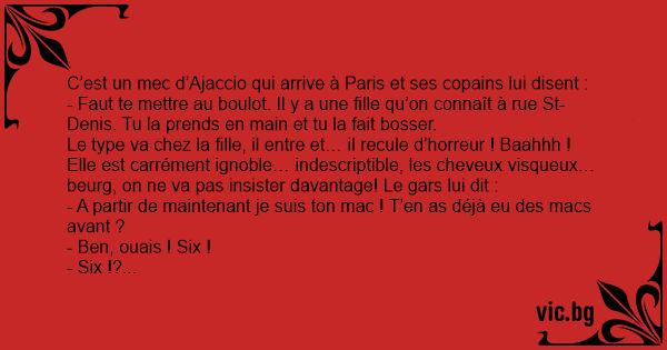 C’est un mec d’Ajaccio qui arrive à Paris et ses copains lui disent :