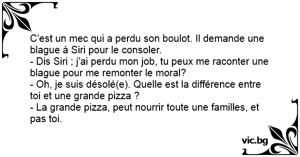 - Dis Siri ; j'ai perdu mon job, tu peux me raconter une blague pour me remonter le moral?