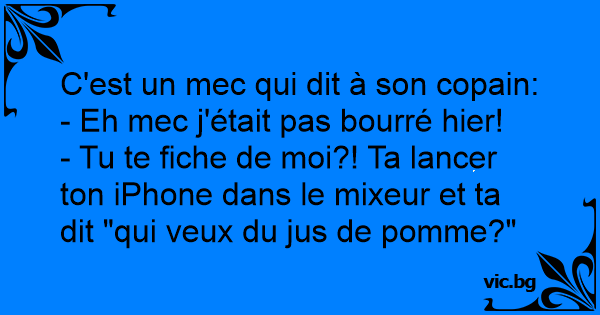 - Tu te fiсhе de moi?! Ta lancer ton iPhone dans le mixeur et ta dit "qui veux du jus de pomme?"