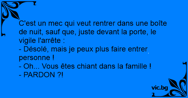 C'est un mec qui veut rentrer dans une boîte de nuit, sauf que, juste devant la porte, le vigile l'arrête :