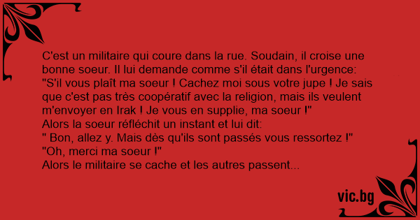 Alors le militaire se cache et les autres passent en courant. Dès qu'il sont partit, le mec ressort en souriant et dit à la воnnе soeur: