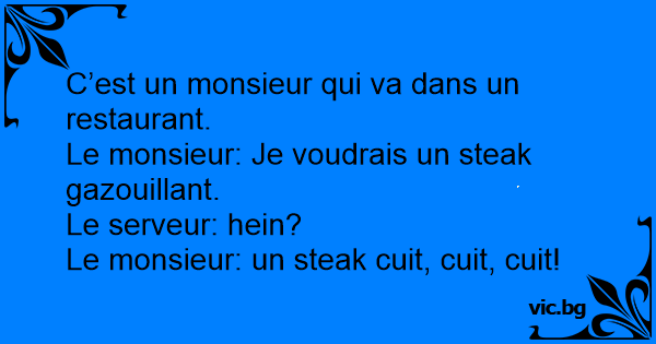 Le monsieur: Je voudrais un steak gazouillant.