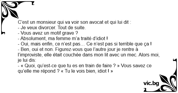 C’est un monsieur qui va voir son avocat et qui lui dit :
