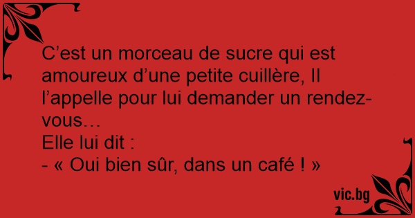 C’est un morceau de sucre qui est amoureux d’une petite cuillère, Il l’appelle pour lui demander un rendez-vous…