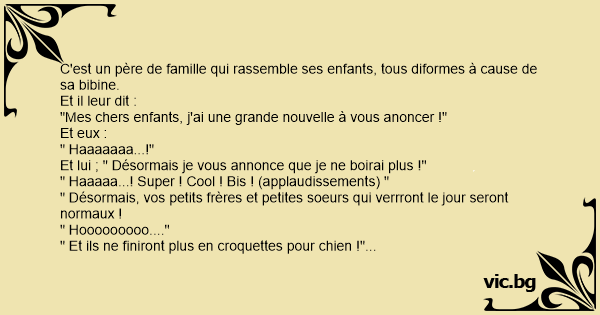 Et lui ; " Désormais je vous annonce que je ne boirai plus !"