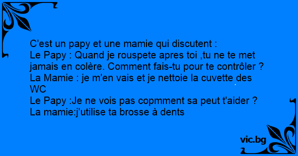 Le Papy : Quand je rouspete apres toi ,tu ne te met jamais en colère. Comment fais-tu pour te contrôler ?