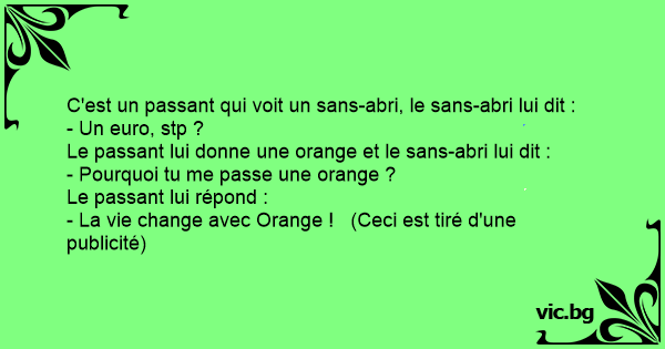 Le passant lui donne une orange et le sans-abri lui dit :