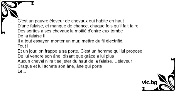 Donc, le fermier prend l'âne, le met au bord de la falaise,