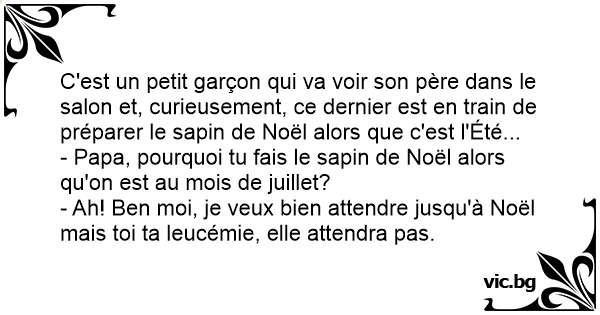 - Ah! Ben moi, je veux bien attendre jusqu'à Noël mais toi ta leucémie, elle attendra pas.