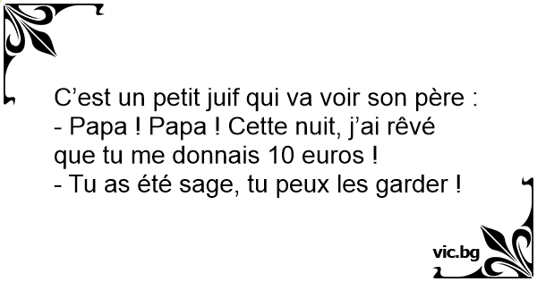 - Papa ! Papa ! Cette nuit, j’ai rêvé que tu me donnais 10 euros !
