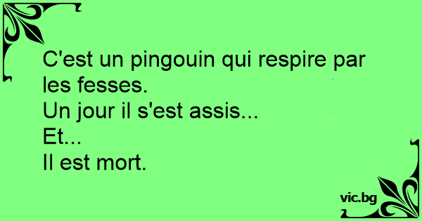 C'est un pingouin qui respire par les fesses.