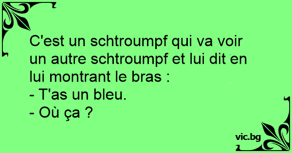 C'est un schtroumpf qui va voir un autre schtroumpf et lui dit en lui montrant le bras :