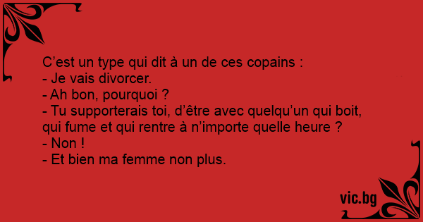 - Tu supporterais toi, d’être avec quelqu’un qui boit, qui fume et qui rentre à n’importe quelle heure ?