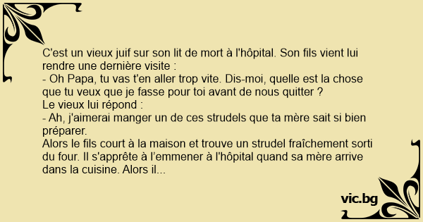C'est un vieux juif sur son lit de mort à l'hôpital. Son fils vient lui rendre une dernière visite :